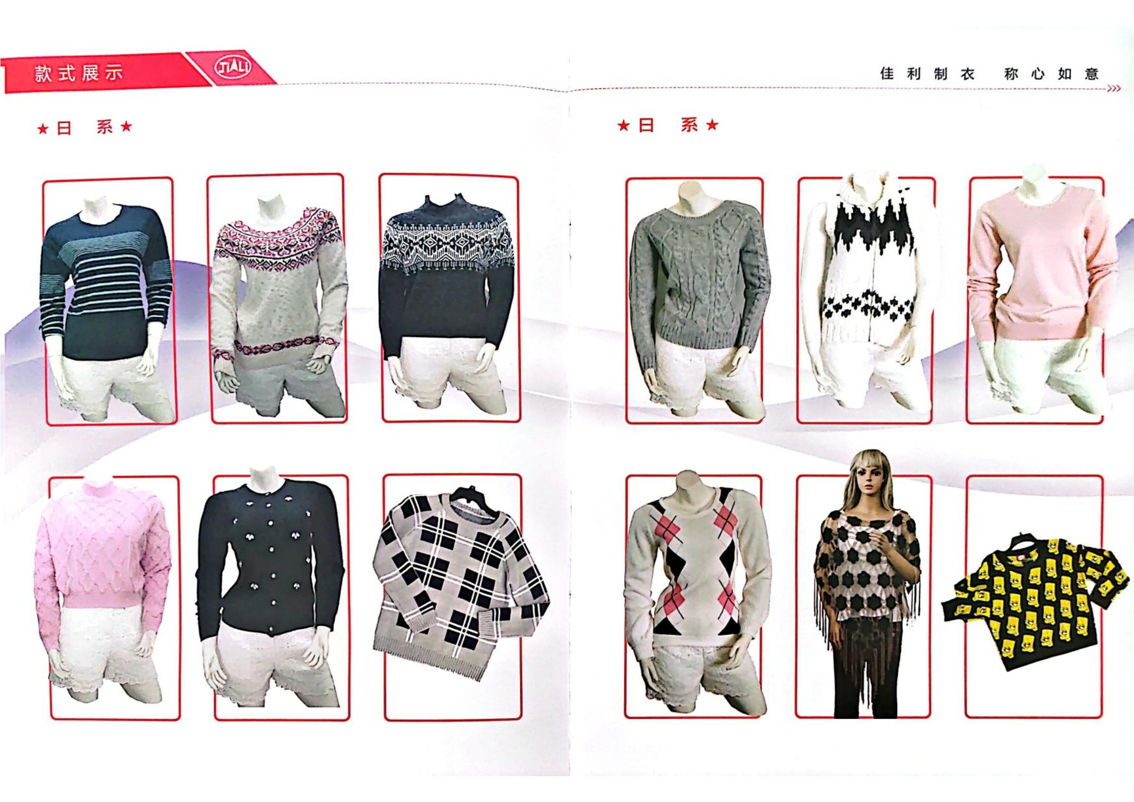 山東省乳山市佳利制股份有限公司于2001年2月成立,位于乳山市城區(qū)工業(yè)園營口路。現(xiàn)有從業(yè)人員260人,其中男性100人,女性160人。固定資產5000萬元,占地22000㎡,建筑面積13800㎡。主要生產各種針型的毛衫及手鉤、刺繡等工藝服裝,針織、梭織面料服裝,主要銷往日本、美國、意大利、英國等幾十個國家和地區(qū)。